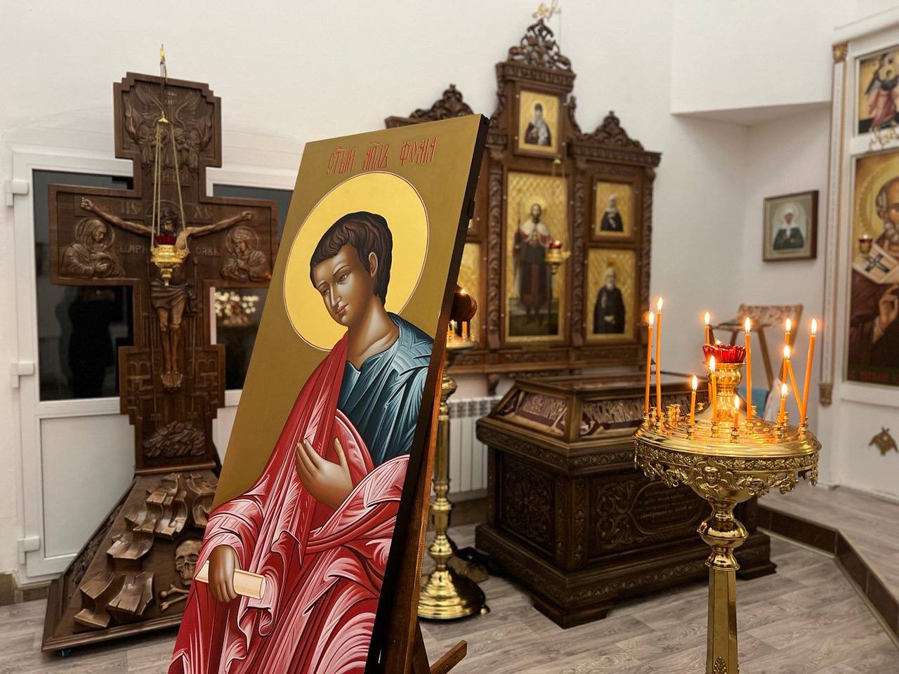 19.12.2025г. По завершении праздничного богослужения настоятель совершил освящение иконы святого апостола Фомы, которая была написана специально для иконостаса нашего храма.
