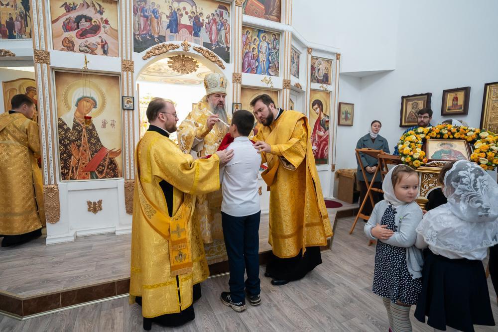 По заамвонной молитве, по случаю престольного праздника был совершен крестный ход вокруг храма, во время которого митрополит Серафим освятил накупольный крест и купол нового здания воскресной школы.По отпусте литургии было провозглашено многолетие, после чего настоятель храма священник Сергий Иванов поблагодарил правящего архиерея за визит и совместную молитву.
