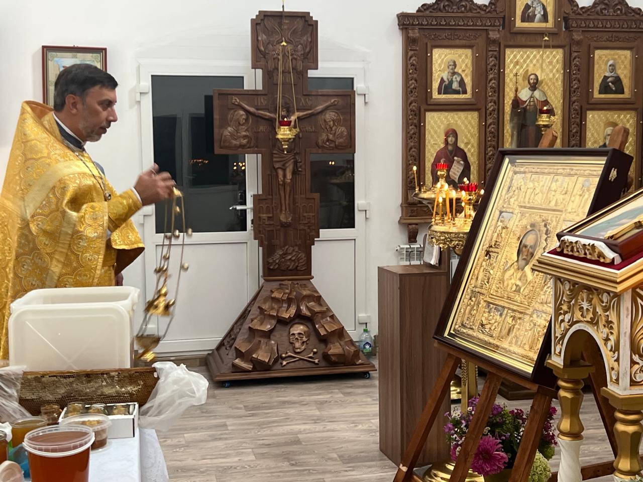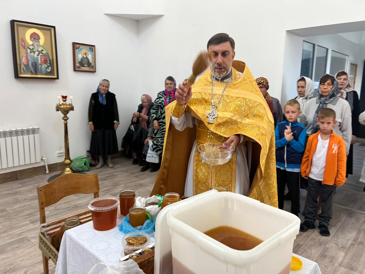 Медовый Спас. По окончании праздничной Божественной литургии настоятель совершил освящение мёда нового урожая.